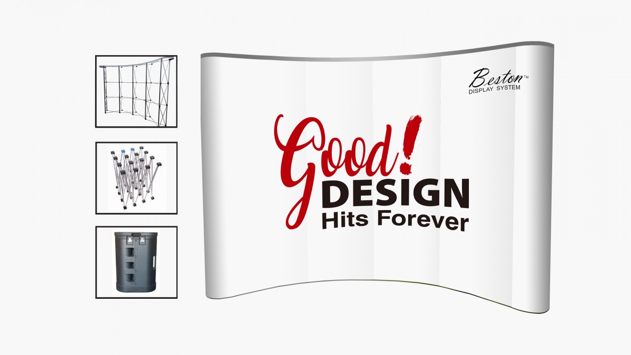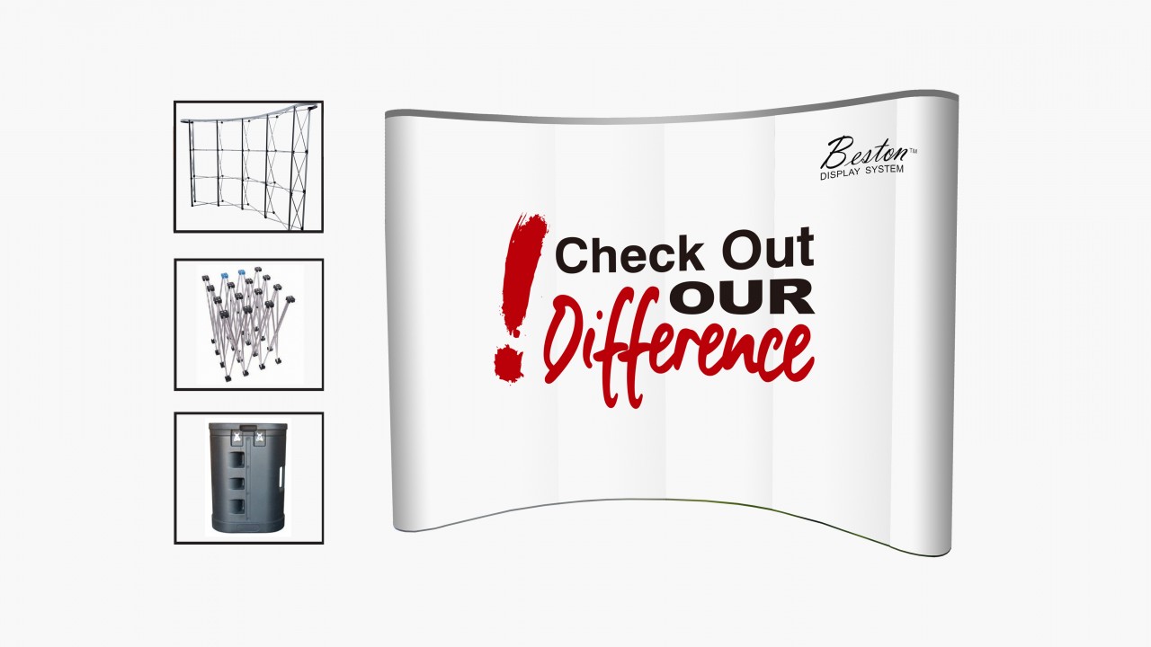 Curved Banner Size: 100”W x 88”H x 25”D