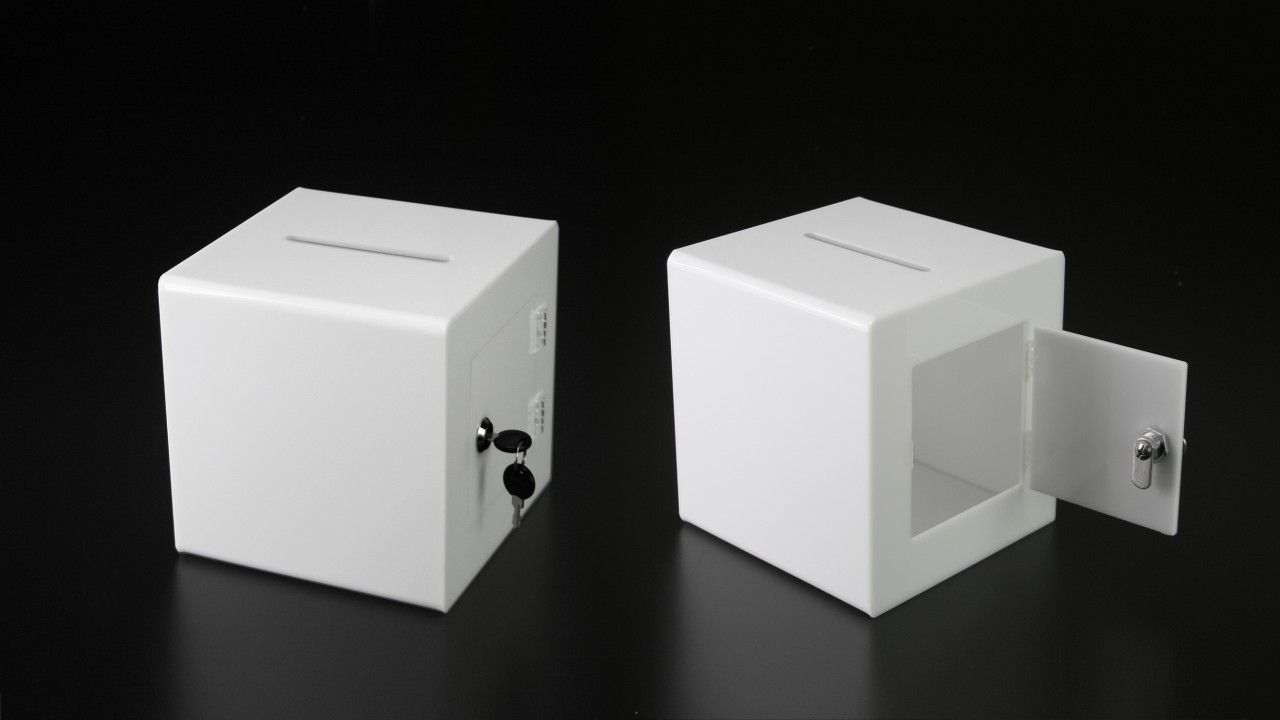 WHITE ACRYLIC BALLOT BOX WITH LOCK #BBOX010W